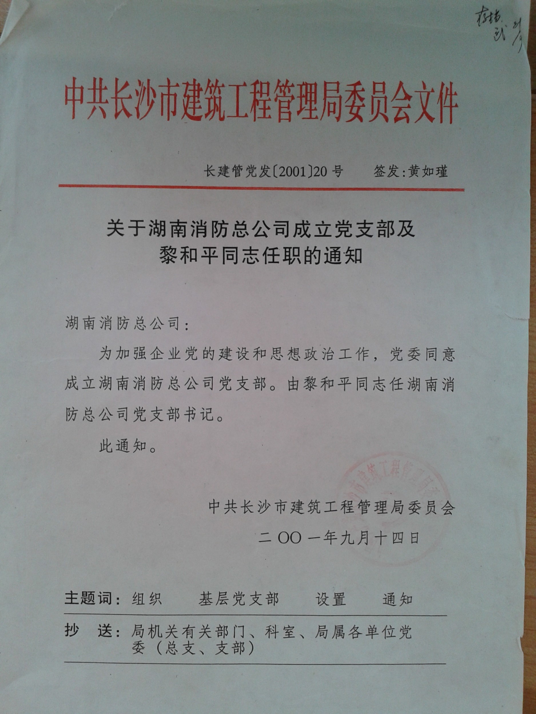 湖南消防总公司党支部成立文件